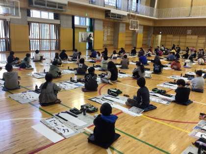 1月10日(金)に小学校生活最初の席書会を行いました。今回、書いたのは「つよい力」です。子どもたちは、2学期の終わりから冬休みなどにたくさん練習してきました。