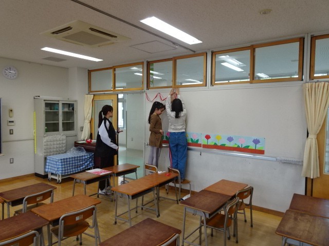 机椅子運び、教室の整備が終わったあとは、入学式の準備です。係に分かれて準備をしました。みんながてきぱきと活動したので予定より早く終えることができました。終了後は体育館に集合しました。6年生になって最初の役割をしっかりと果たせた6年生、7日(月)からの新学期の活躍に期待しています。頑張りましょう。