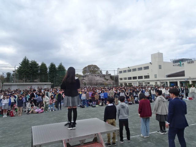 芦花小学校の広い校庭に、子どもたちが集まってきました。新しい学年の学級ごとに並んで着任式・始業式を行いました。新しい先生の紹介も始業式での校長の話もしっかりとした態度で聞けていて素晴らしかったです。始業式の6年生の代表の言葉も、最高学年としての意気込みが感じられる立派な挨拶でした。今年1年、芦花小のリーダーとして頑張っていきましょう。