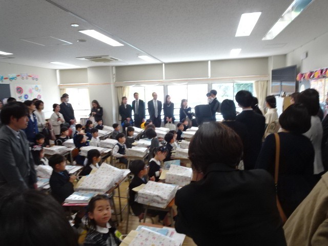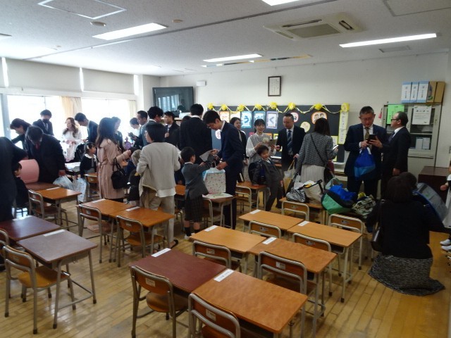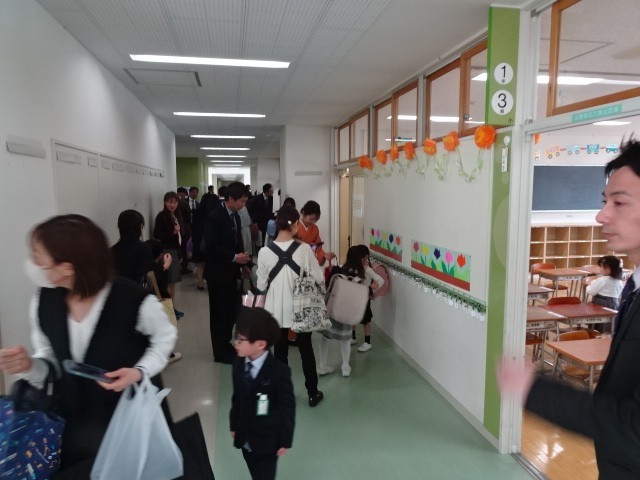 体育館で記念写真をクラスごとに取って、おうちの人と教室に行って、担任の先生のお話を聞いてから下校になりました。明日も元気に学校に来てくださいね。