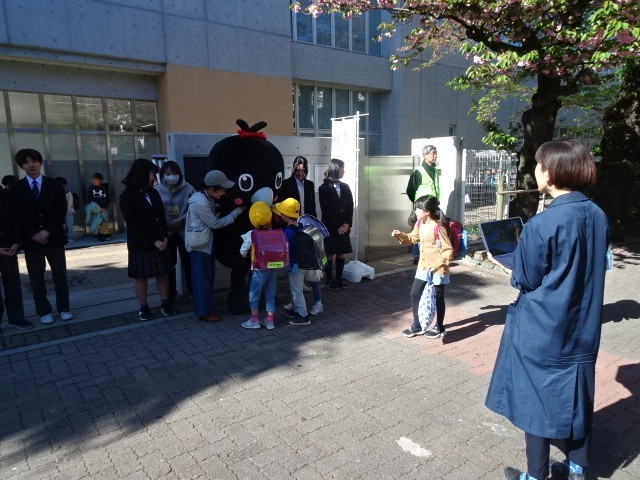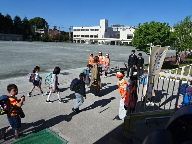 今日も良い天気の中、元気にあいさつキャンペーンを行っています。6年生は、中学校の昇降口に行って中学生にも挨拶しています。3月まで6年生だった先輩たち、制服姿で少し照れくさそうに挨拶しています。