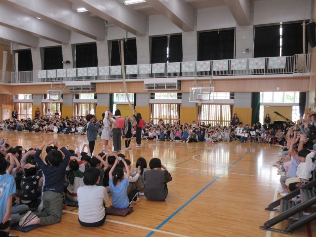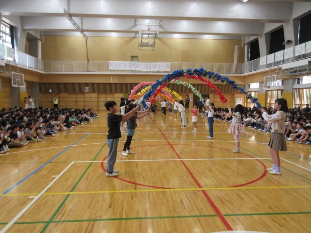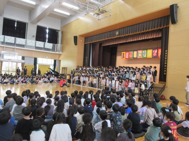 3校時に「1年生を迎える会」がありました。歓迎ムードの中、6年生と手をつないで体育館に入場した1年生。2年生から種のプレゼントが贈られ、芦花ラス会議メンバー(代表委員)による寸劇とクイズで学校の様子を楽しく知り、お礼の歌を披露してくれました。最後は全員で歌を歌い、温かな芦花小らしい雰囲気の会となりました。