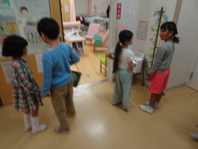 2年生が準備してきた「学校探検」。今日は、1年生を連れての本番です。ペアになった1年生をやさしくエスコートしながらいろいろなお部屋を案内していました。2年生の案内に1年生も安心していました。これからも仲良くしていきましょうね。