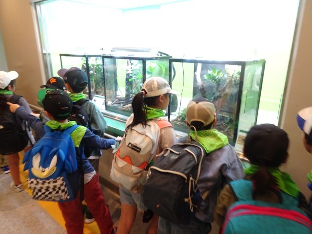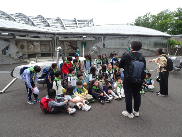 午後からはこん虫園の見学です。クラスごとに写真を撮って見学です。たくさんのこん虫やちょうを見学しています。