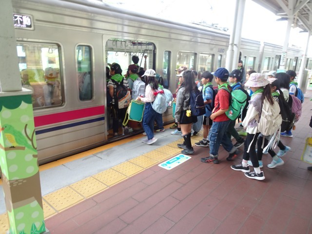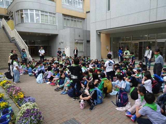 帰りの電車では疲れて眠っている子もいましたが無事に学校に到着。実行委員会の進行でふり返りの会をしています。友達と協力しながら楽しい遠足ができました。この頑張りをこれからの学校生活にも生かしていきましょう。