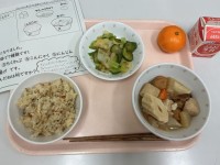 今日の給食は、チキンカレーライス、フレンチサラダ、清美オレンジ、牛乳です。