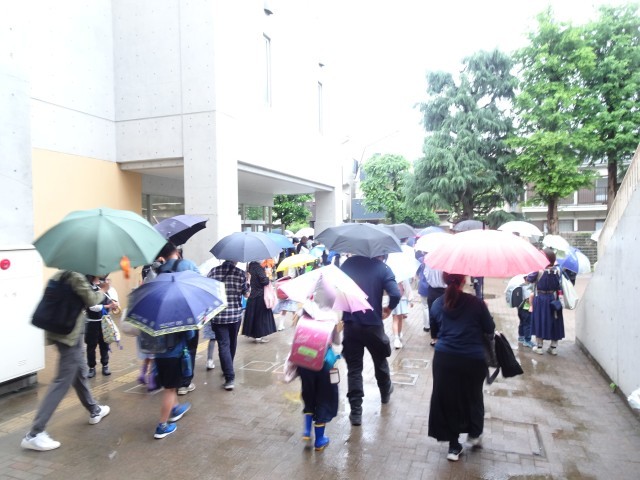 土曜授業日の今日、今年度の「引き取り訓練」を実施しました。震度5弱以上の地震が発生したことを想定して保護者の方に来校していただき安全に子どもたちを引き渡す訓練です。あいにくの雨になりましたが、ご協力いただきありがとうございました。お家でも大地震に対する備えを考える機会にしていただければと思います。