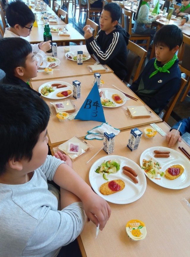 三日目朝です。朝の会は時間通りに始めることができました。生活班での声掛けが素晴らしいです。朝食は食事係のチームワークでこちらも時間通りの配膳でした。時間を意識して過ごすことができています。