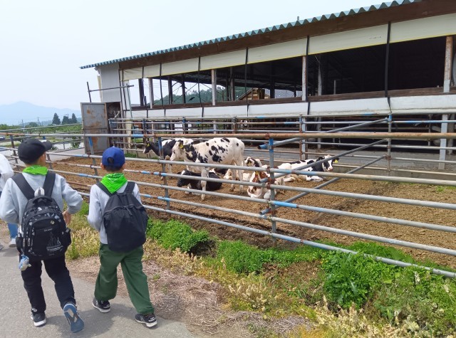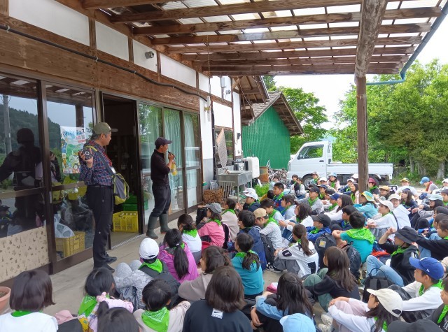 荷物と部屋の整理整頓を済ませ、閉室式で二泊三日お世話になったふじやまビレッジにお礼を言いました。村巡りは、田んぼやこんにゃく畑、湧き水や牛舎など川場村の景色を見ながら歩きました。途中りんご農園で美味しいりんごジュースを頂き、民俗資料館を目指します。