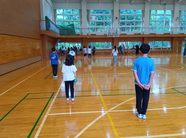 雨の中ですが、子どもたちは元気に体育館で遊んでいます。