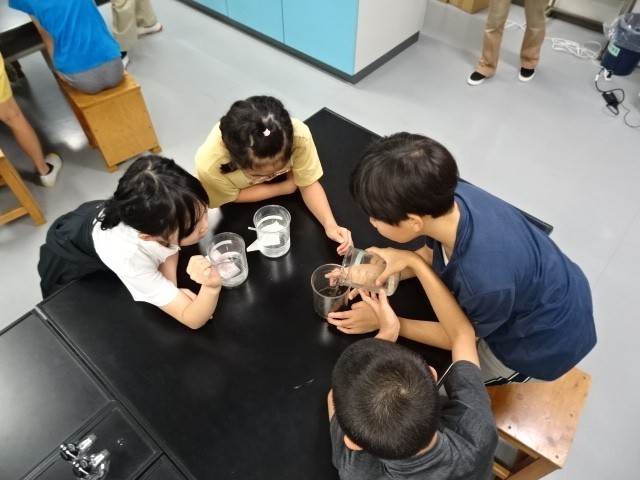 4年生が東京都水道局の方に来ていただき「下水道キャラバン」をクラスごとに行いました。水再生センターで下水をきれいにする沈殿の実験をしたり、トイレットペーパーとティシュペーパーの水に溶ける様子の違いを比べたりしました。油をそのまま流すと下水道管が詰まってしまうことなどを学びながら自分たちにできることも考えました。1時間の授業を受けてみんな下水道マイスターに認証されました。お家でも子どもたちと一緒にできることに取り組んでみてください。写真は1組の授業の様子です。
