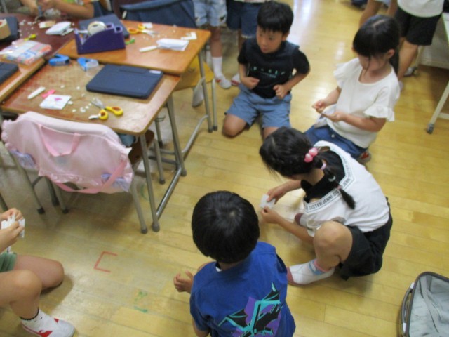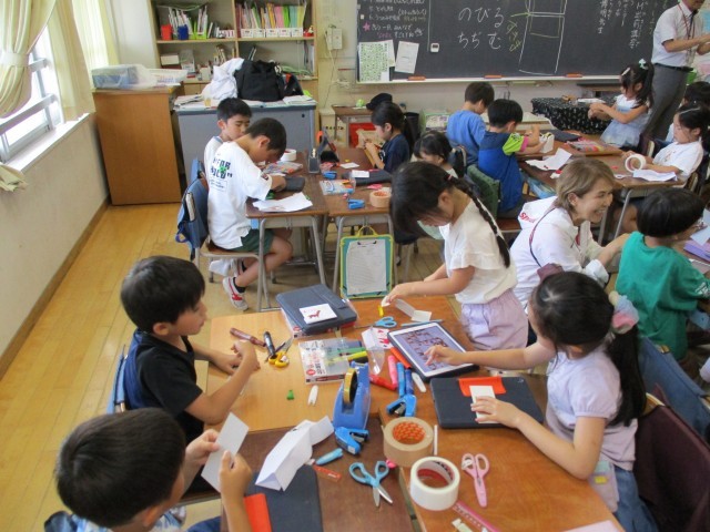 2年生のSTEAM教育講座がありました。3日に行わなかった3クラスで実施しました。今回もゴムを使ったおもちゃをみんなで作って一緒に遊びました。ゴムのかけ方で動きが変わったりするのを楽しむ姿もみられました。