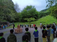 2日目の夜はキャンプファイヤーです。川場村の火の神様から、友情の火、努力の火、活...