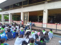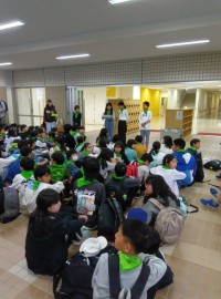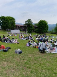 ふじやまビレジ、なかのビレジ合流して民族資料館前で移動教室最後の昼食です。天気が...