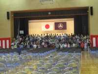 卒業式を終えて、音楽会で歌った合唱曲が流れる中子どもたちは退場しました。記念写真...