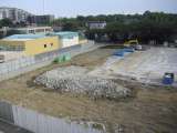 校庭整備等工事の様子です。仮設校舎に囲まれていた校庭に敷きつめられていた、重車...