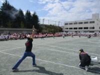 団体演技の最後は最高学年の6年生です。圧巻のソーラン節「「彩」~全力・団結~」で...