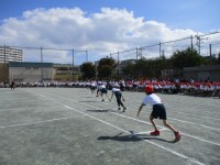 3年生の徒競走(80m)です。今年からカーブを走ります。距離も30m伸びましたが...