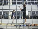表賞式終了後、大会議室前のロビーに展示された作品の前で記念写真を撮影していると...