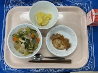 七草ぞうすい鶏肉の照り焼きフルーツきんとん牛乳今日から3学期の給食が始まりました...