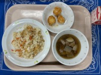 チキンライスコーンポタージュ豆腐ショコラケーキ牛乳今日で2学期最後の給食でした。...