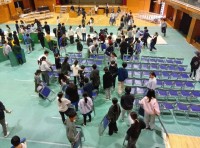 6年生が体育館の会場を準備してくれています。椅子を運んだり、マットを敷いたり、キ...