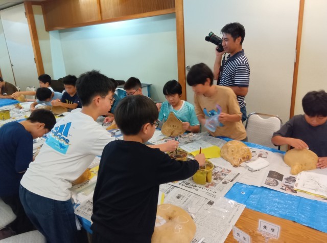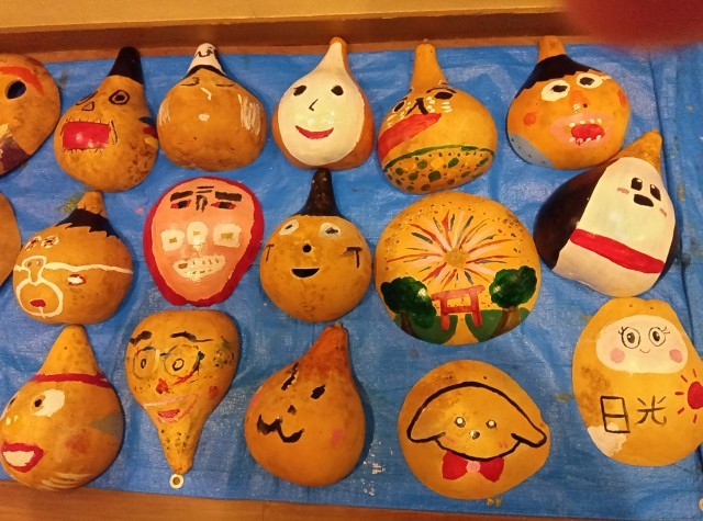 ふくべ細工です。個性あふれる作品ができました。みんな夢中になって取り組んていました。