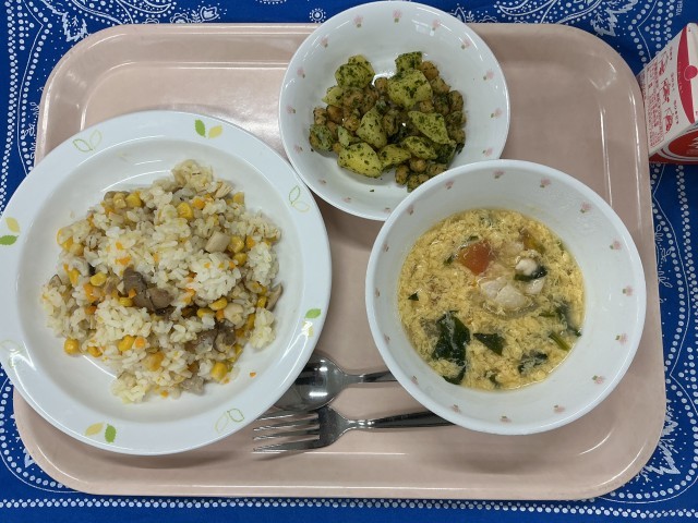今日はニンニクをたっぷり使ったガーリックピラフでした。