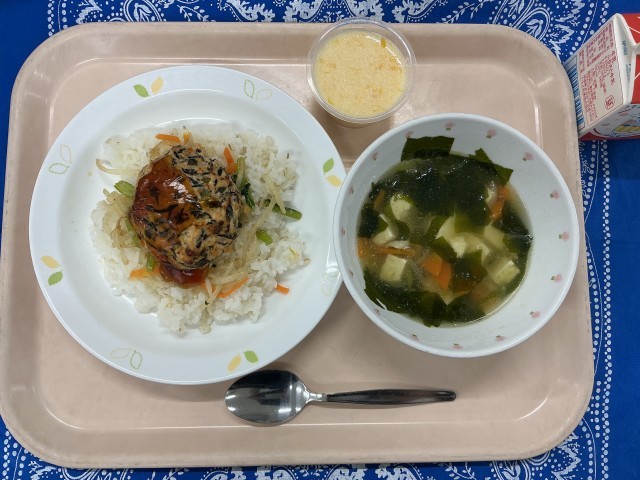今日は新メニューのピリ辛つくね丼とみかんヨーグルトゼリーでした。