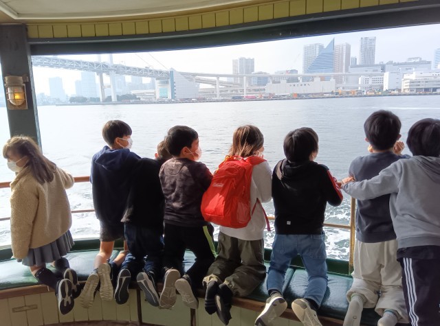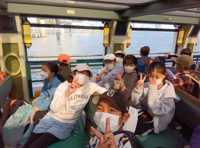 お弁当を食べて水上バスに乗りました。浅草へ向かぃます