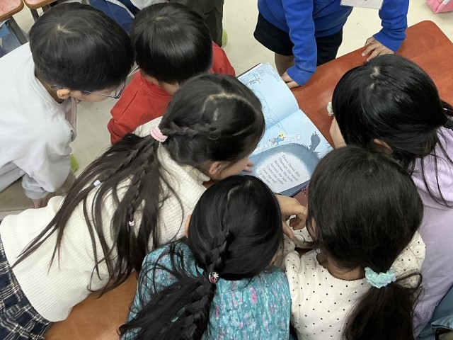 「授業が楽しかった!」「本当に、先生みたい!」と、憧れをもち、お姉さんたちがしてくれたように、絵本を読み合っていました。