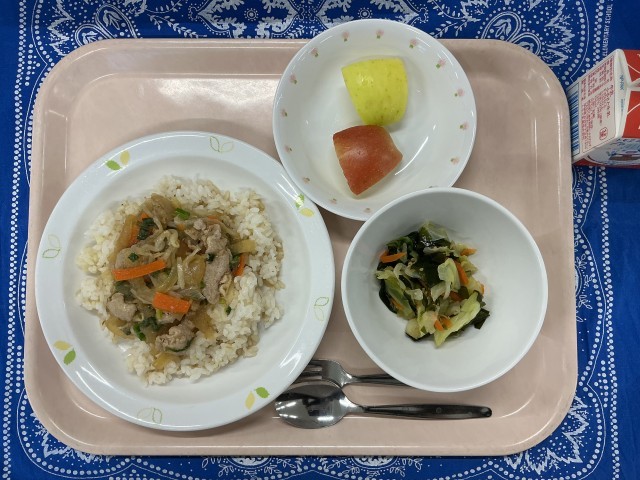 今日は、2種類のりんごを食べ比べしてもらいました。