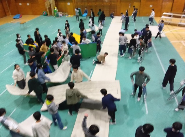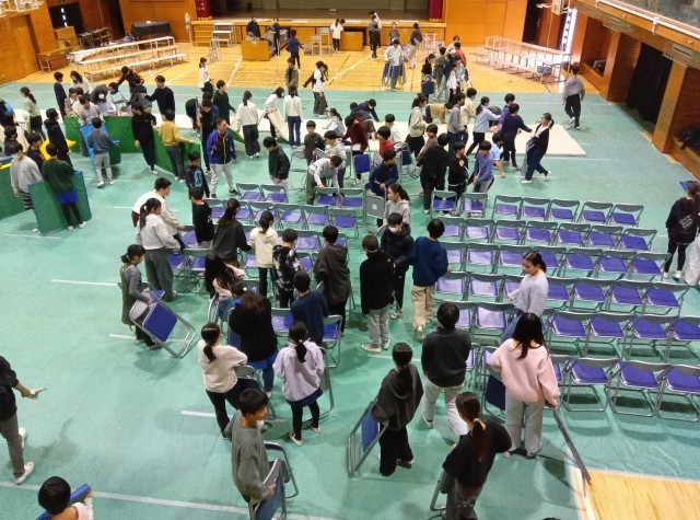 6年生が体育館の会場を準備してくれています。椅子を運んだり、マットを敷いたり、キビキビと働いています。このような取組にも最高学年としての 自負と責任を感じます。 本番が楽しみです。