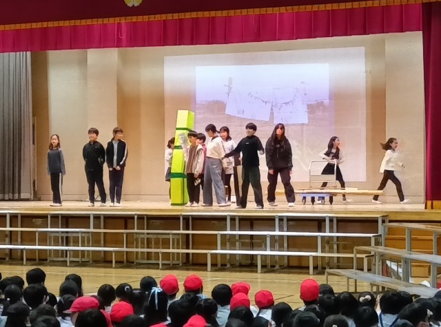 お米 プロジェクト、天然酵母によるパン作り、アフリカとのコラボレーション、綿花の探究、竹の探究、それぞれのクラスの取り組みを ニュース という形で劇にしました。 子供達が生き生きと活動し 思いが伝わってくる表現になっていました。 頑張ろうという気持ちが溢れ出ていました。