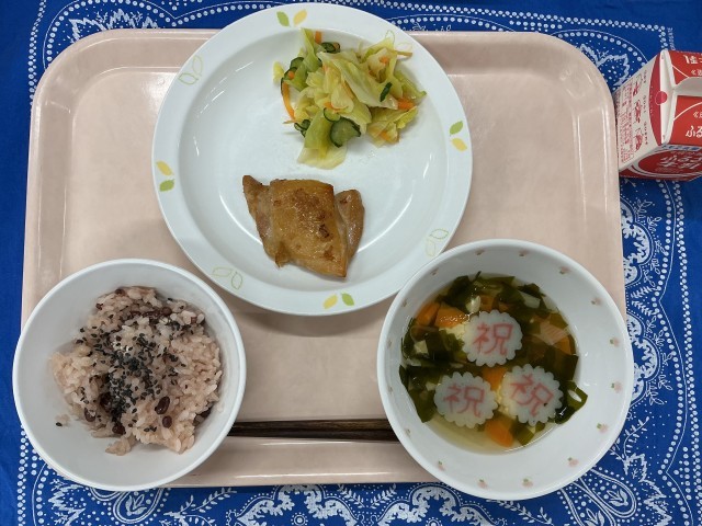 今日で今年度の給食が終了しました。進級・卒業をお祝いする献立です。