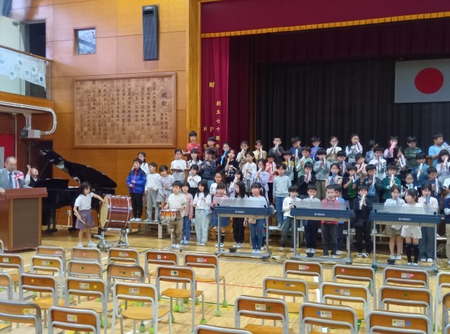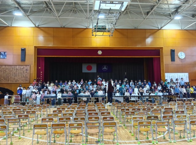 新2年生が入学式のための練習をしています。 キリッと引き締まった表情で 新1年生を迎えるために一生懸命です。