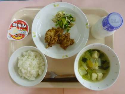 先週の金曜日(12/14)の給食の画像です。「とりのから揚げ」と「雪見大福」は、なかなか給食に登場しないメニューなので、子どもたちは大喜びでした。