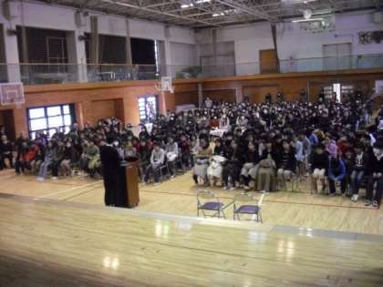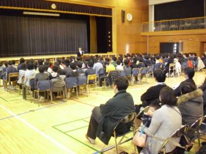 歌手・タレントの方を講師にお招きし、6年生児童と保護者・地域の方々が一緒にお話を聞きました。