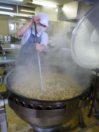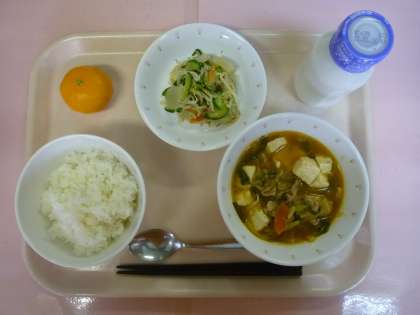 昨日(3/4)の給食の画像です。左の写真は「とうふチゲ」を作っている様子です。キムチの入ったピリ辛な「とうふチゲ」は、ごはんがすすんでよく食べてくれました。