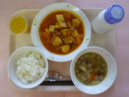 昨日(3/8)の給食の画像です。6年生が考えた「イタリアン風肉じゃが」は、色合いがよくいろいろな野菜が入っていましたが、よく食べてくれました。