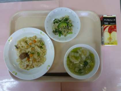 先週の木曜日(5/2)の給食の画像です。「ちゅうかおこわ」はもち米が入っているため、食感がもちもちとしていて食べ応えがありました。