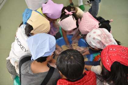保護者の学習ボランティアの参加もあり、活気のあるみそづくりになりました。