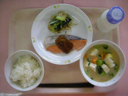 昨日(5/15)の給食の画像です。「りんご」と「レモン」を使った「バーベキューソース」のかかっている「鮭のバーベキューソース」をよく食べてくれました。