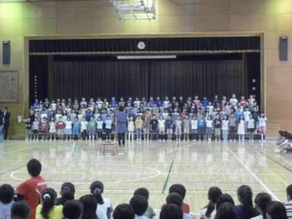 今朝は、音楽集会がありました。各学年で「さんぽ」の合唱をしました。