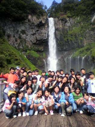 華厳の滝は水量たっぷりで、ドウドウと音を立てています。水しぶきを浴びて気持ちいい!