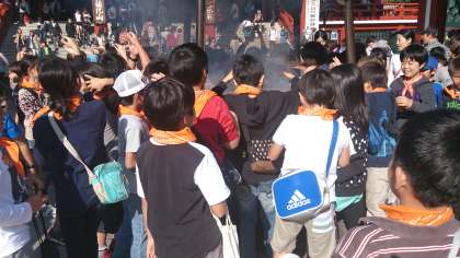 4年生が中央防波堤埋立地、浅草の見学に行きました。埋立地の広さに驚くとともに、50年で埋め立てが終了してしまうことから、ごみの分別や3Rの重要性を認識しました。浅草では浅草寺仲見世通りで日本の伝統的なものについて、グループごとにお店の人の取材やお土産の購入をしました。