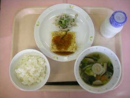 先週の金曜日(1/10)の給食の画像です。左の画像は「松風焼き」です。ごはんに合うおかずだったので、ごはんと一緒にたくさん食べてくれました。