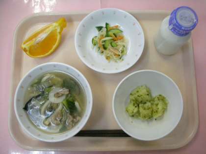 昨日(2/4)の給食の画像です。具たくさんの「ちゃんこうどん」を子どもたちはしっかり食べてくれました。