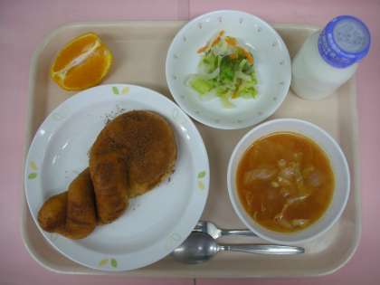 昨日(5/21)の給食の画像です。昨日はココア味の「あげパン」でした。給食中は、口の周りにココアがついた子どもたちがたくさんいました。