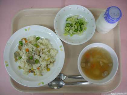 昨日(6/2)の給食の画像です。「トマポテスープ」は、トマトからアクが出るので丁寧に取って作ってもらいました。